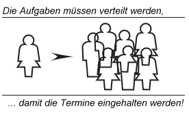 Zum Organisieren gehört auch, Aufgaben zu verteilen. Alle machen beim Layout mit, aber jemand, der sich besonders gut mit dem Computer auskennt, formatiert die Texte, druckt sie aus und macht sonst alles, was damit zusammenhängt. Ein anderer sammelt die Kopieraufträge der verschiedenen LayouterInnen und geht damit zum Kopieren - so muss nicht jeder einzeln rennen. Um das Anzeigenlayout, um den Seitenspiegel und ums Kaffeekochen muss sich auch noch jemand kümmern. Wenn solche lästigen Aufgaben verteilt werden und nicht an einem einzigen hängen bleiben, können alle mitlayouten. Außerdem fühlen sich alle mitverantwortlich, und es entsteht in den verschiedenen Arbeitsbereichen weniger Chaos.