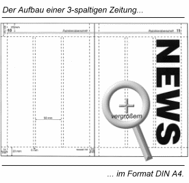 Wie viele Spalten hat eine Seite, und wo fangen diese auf der Seite an? Wo kommen die Kopfleiste und die Seitenzahlen hin? All diese Dinge muss die Redaktion einmal für die Zeitung festlegen, damit nicht der eine zwei Spalten auf eine Seite klebt und die Seitenzahlen oben in der Mitte, und der zweite vier Spalten auf die nächste Seite und die Seitenzahlen ganz vergisst. Solche Dinge müssen festgelegt werden, ansonsten fällt die Zeitung in ihrem Gesamtbild total auseinander.