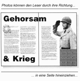 Der Text darf natürlich nicht in Photos und Graphiken untergehen, aber wenn das Verhältnis Text zu Graphik ausgewogen ist, dann kann selbst der langweiligste Artikel und das trockenste Layout noch interessant und lesenswert werden.