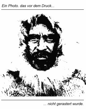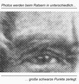 Das Photo NICHT einkleben. Alle Photos getrennt von den Vorlagen mit zum Drucker schicken. Dort werden sie wie oben beschrieben gerastert.