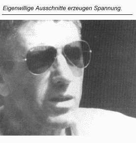 Es wirkt auch sehr raffiniert, wenn ein recht seltsamer Ausschnitt gewählt ist, wenn z.B. einer Person einfach die Stirn abgeschnitten ist. So etwas kann Spannung erzeugen. Deshalb ist es sehr wichtig, sich über den richtigen Ausschnitt Gedanken zu machen. Dieser Teil des Photos wird ausgeschnitten - aber bitte gerade und mit Cutter, Stahllineal und Geodreieck.