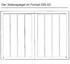 Bei der letzten Redaktionssitzung der Schülerzeitung habt ihr Euch über den Standardsatzspiegel Gedanken gemacht. Ihr habt Euch für vier Spalten a 6 cm entschieden, der Fließtext soll in "Times" sein und es gibt vier verschiedene andere Schriften für die Überschriften. Lage und das Aussehen der Kopf- und Fußzeile sind auch klar. Die ganzen Informationen hängen bereits als Skizze an der Wand. Zuerst besorgst Du Dir die Kopf- und Fußzeilen und die Seitenzahlen. Außerdem markierst Du Dir die Spalten, also ihre Lage, Länge und Breite. Die Überschriften sollen in einer dicken, blockigen Schrift sein und Du willst über und unter die Zwischenüberschriften jeweils einen dicken Strich machen.